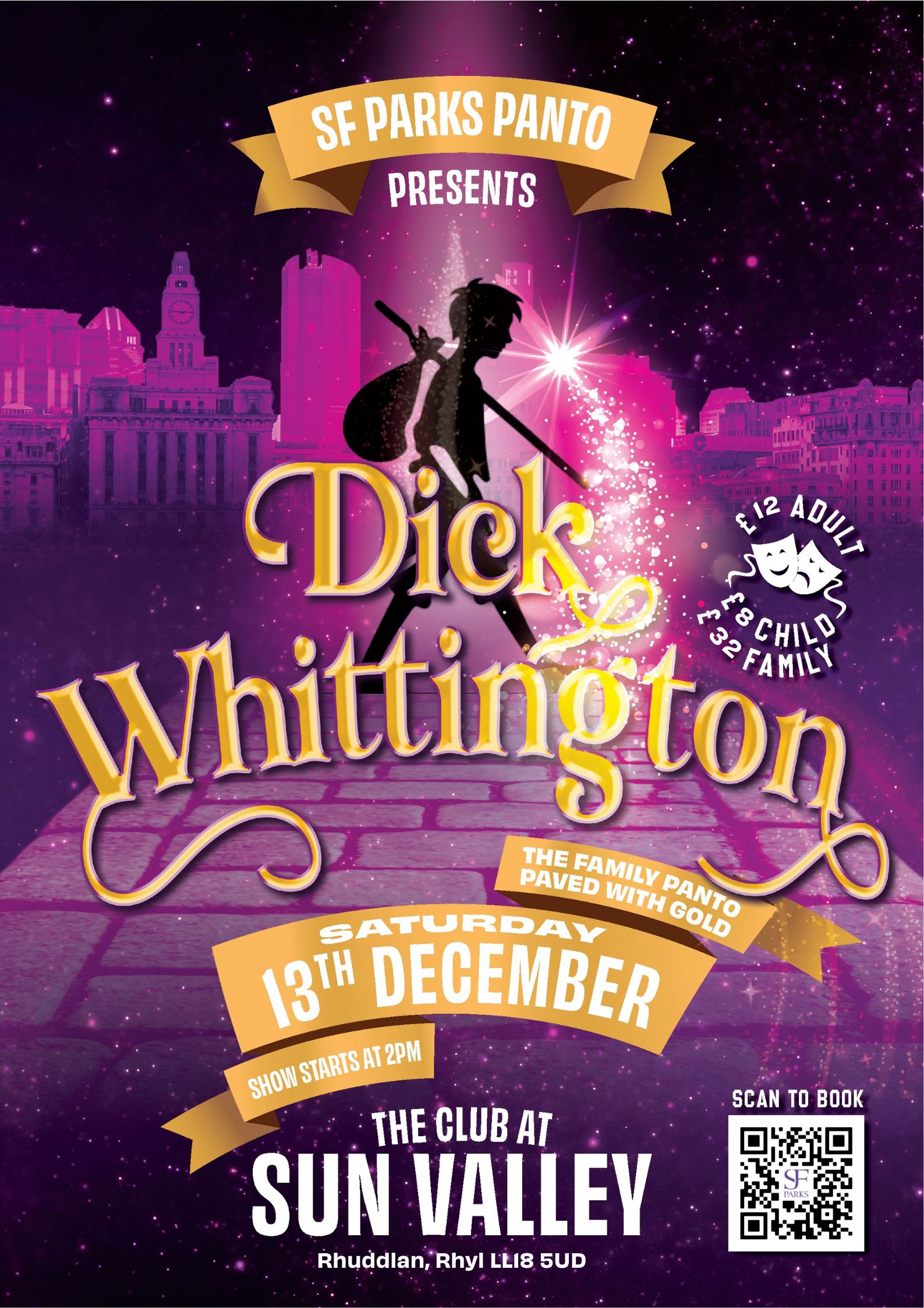 Our annual panto is back!! (Oh yes it is…) and this year it is the fantastic Dick Whittington. Join us for top-notch festive family fun in The Sun Valley Club – 2pm Saturday 13th December